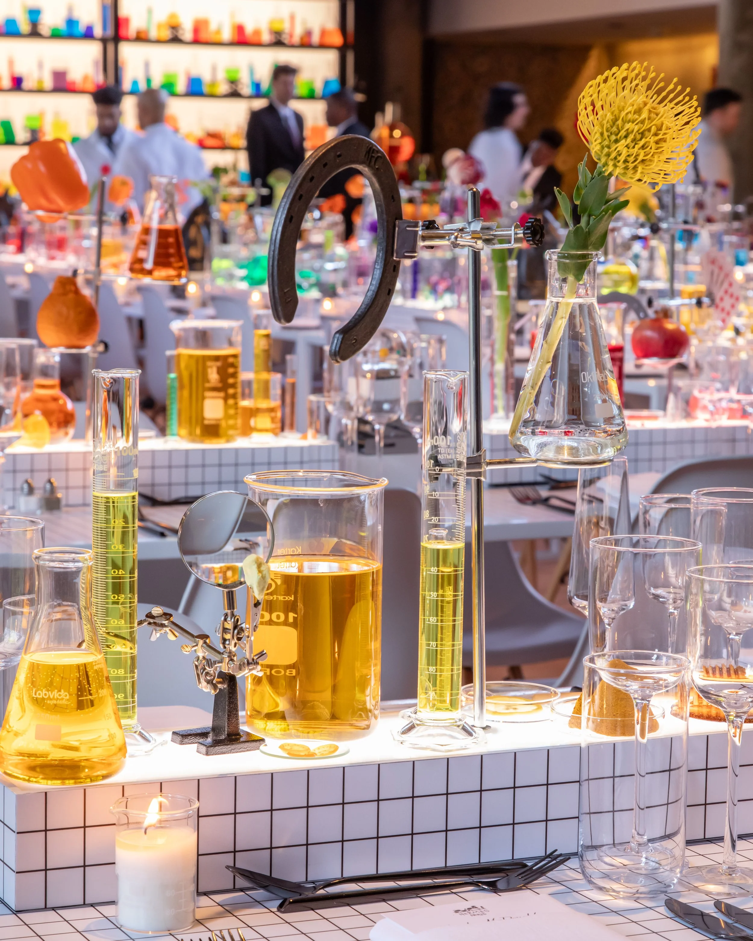 In April 2024, Hermès celebrated the grand opening of their stunning new store in Princeton, New Jersey, with an exclusive event for VIPs and press. The evening culminated in a never-before-seen experience at the Institute of Advanced Study, famously known as Einstein's former research hub. As the creative director and illustrator for this project, I worked with the team to transform the Institute’s cafeteria, once featured in A Beautiful Mind, into the Hermès Chromatic Research Laboratory. This whimsical space came alive as "scientists" busily searched for the perfect Hermès orange—along with every other color in the spectrum! Guests enjoyed a three-course culinary journey, complete with "scientific" experiments and an extraordinary performance by Berlin-based Playtronica, who created music using Hermès bags and colored Jello as sound-conducting instruments. The event was a vibrant and unforgettable celebration of color, creativity, and innovation that hermès is known for.